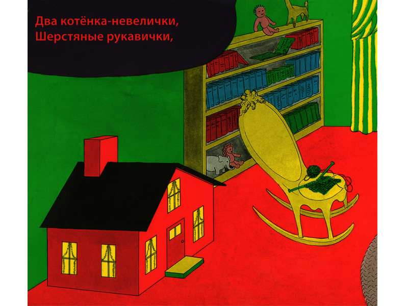 Цвета на картинках чистые и контрастные (этот принцип использования цвета в детской книге на протяжении всего прошлого века отстаивали художники-классики). На всех страницах изображен один и тот же интерьер. Но художник каждый раз меняет угол зрения: вот комнату видно целиком, а на следующей странице в фокус попадает один ее угол и приближается к зрителю. Предметы, выглядевшие маленькими на предыдущем развороте, укрупняются, их можно рассмотреть более подробно, в деталях. Очень похоже на то, как блуждает по комнате взгляд человека, постепенно погружающегося в сон. Ощущение усиливается еще и за счет ритмичного чередования цветных и черно-белых картинок.