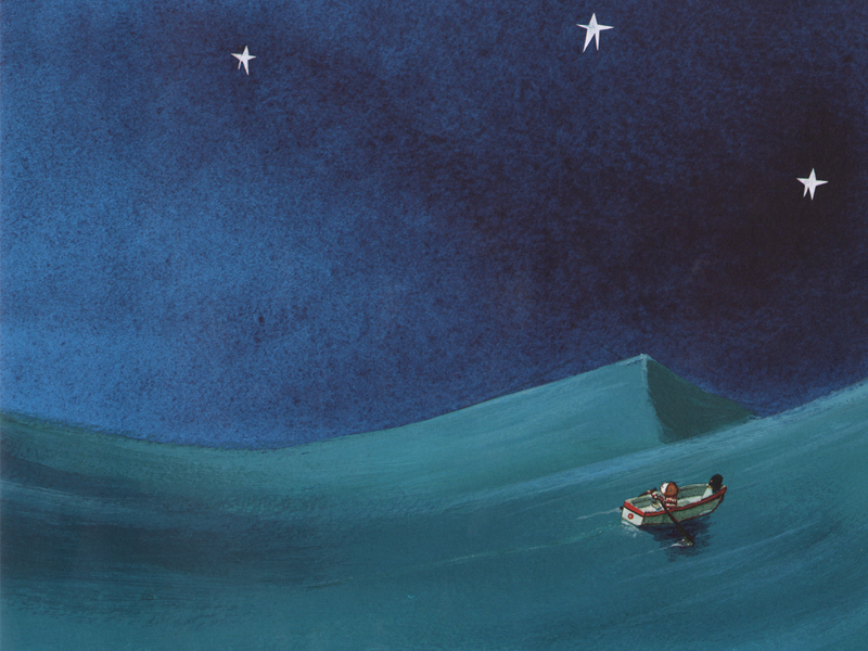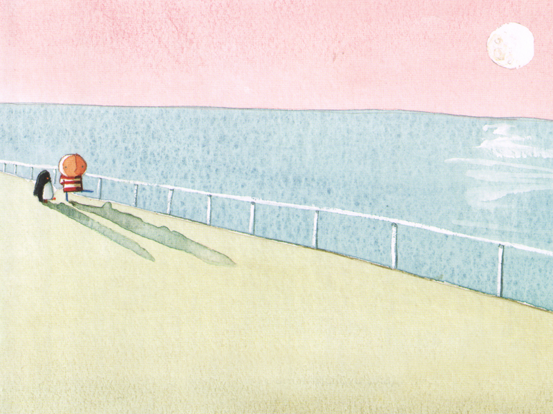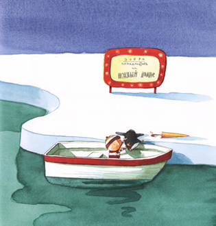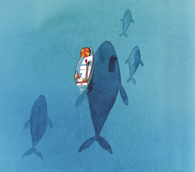 Эта пронзительная история заканчивается так: «Мальчик и пингвин возвращались домой вместе. По дороге они говорили об удивительных вещах». На последней картинке мы видим лодку сверху, в ней – мальчик и пингвин, весла лежат без дела, а где-то внизу, в толще бирюзовых вод океана, проплывает стая китов. И есть надежда, что пингвин, спрятавшийся под зонтиком, больше не выглядит грустным.