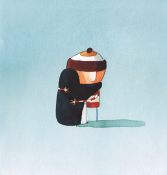 В этой книге изумительные иллюстрации. Персонажи как будто сошли с детских рисунков: мальчик – глазки-пуговки, ножки-палочки, полосатый прямоугольник футболки и шапка с помпоном, а пингвин так и вовсе – маленькая черно-белая горка. Здесь практически нет изображения эмоций героев: загадочная полуулыбка, слегка опущенный клюв – только и всего. В этом есть деликатность и доверие к читателю.