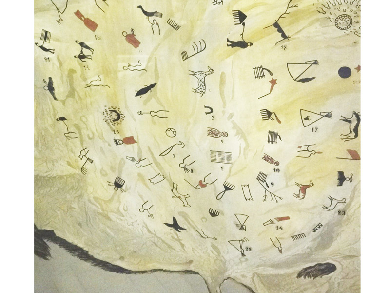 Составляя предметные письма, дети на собственном опыте выяснили, что три камешка или пять палочек – важные элементы послания! – можно случайно сдвинуть или вообще потерять. И тогда послание не будет понятно адресату. Осознав эту закономерность, дети самостоятельно сформулировали идею пиктограммы, рисуночного письма. Мы вспомнили уже виденную в Кунсткамере пиктографическую летопись индейцев дакота, рассмотрели другие рисуночные письма индейцев и попытались их расшифровать.