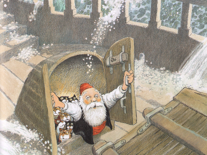 Правда, сказку «Три поросенка» у нас хорошо знают – не благодаря английскому первоисточнику, а благодаря михалковской версии, тоже ставшей классической. А вот про капитанов, богатеющих за счет котов-ловцов крыс, мы до последнего времени не читали. Инга Мур совершенно освободила средневековый сюжет от всех исторических привязок и превратила его в абсолютно детскую и очень современную сказку.