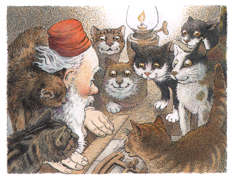 Купцы разочарованы. Но они не впадают ни в отчаяние, ни в ярость. Почему-то и они легко принимают свою очевидную с коммерческой точки зрения неудачу (в мире Инги Мур нет злых людей и животных), возвращаются домой и отдают подаренных им котят капитану Кошкину.