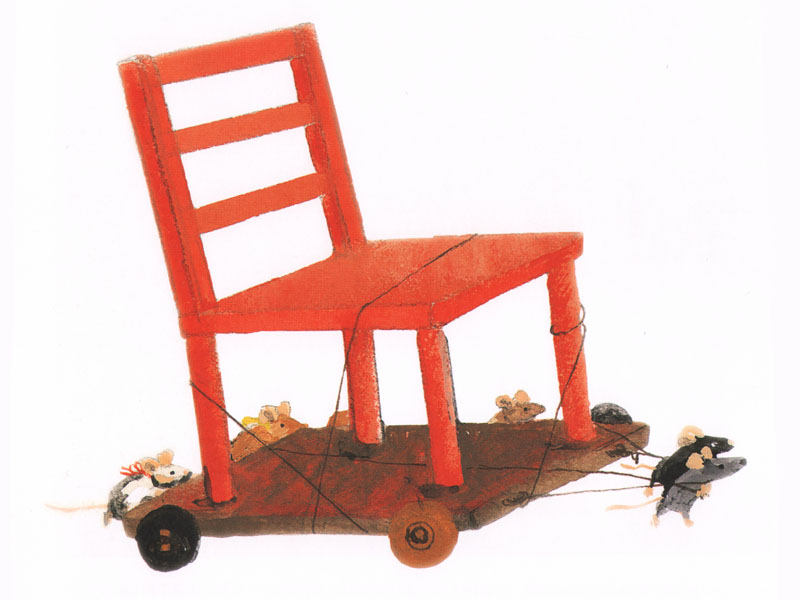 И ведь у каждой вещи может быть еще и своя сказка. Вот интересно: что пришлось пережить ярко-красному стулу с высокой спинкой до того, как он оказался на свалке, а потом стал крышей мышиного дома?