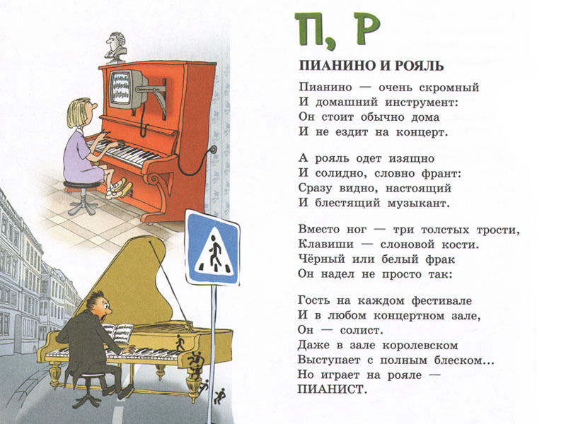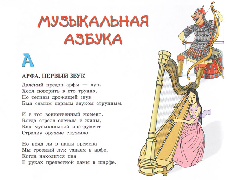 И так – про самые разные инструменты, инструменты от А до Я. Про каждый – своя поэтическая песенка. Вроде бы это невозможно, но сквозь музыку стиха слышен голос музыкального инструмента. По крайней мере, ощущается его характер.