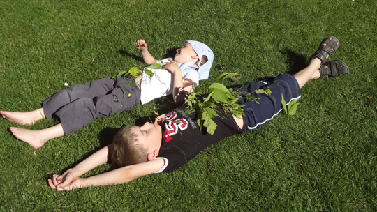 А еще мы внимательно и долго рассматривали, трогали и нюхали цветы; дети открыли для себя нежную голубую лаванду. Я глубоко убеждена: «думающее тело» ребенка – основный канал, с помощью которого человек познает мир до 12-13 лет. Поэтому «Цветы маленькой Иды» мы читали в копенгагенском парке, среди тех самых цветов – роз, гвоздик, пионов, которые танцуют на цветочном балу. В сказке Ида хоронит свои увядшие цветы и мечтает об их скором возрождении. Казалось бы, какая печальная и совсем недетская тема! Но мой Лёня попросил прочесть сказку дважды. А потом закопал в землю только что сорванные им травинки и сказал им: «Спите тут до следующей весны»… Значит, он все понял.