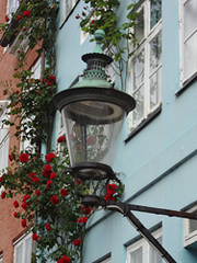 В современном Копенгагене нет улицы с таким названием. Но мне очень хотелось показать детям «маленькие домики» – они ведь появляются в самых разных андерсеновских сказках. В них живут Кай и Герда, Яльмар и Оле-Лукойе. На окошке такого домика стоит птичья клетка с бутылочным горлышком, а в уютном кресле, под пледом, лежит старый уличный фонарь.