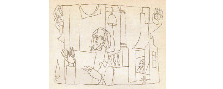Мы сочиняли истории про каждый дом: кто живет в доме, в окне которого выставлены куклы? Вспоминали свои окна: можно ли по ним определить интересы хозяина? Мальчики выбирали – каждый для себя – самый лучший дом, а потом рисовали его в своих блокнотах.