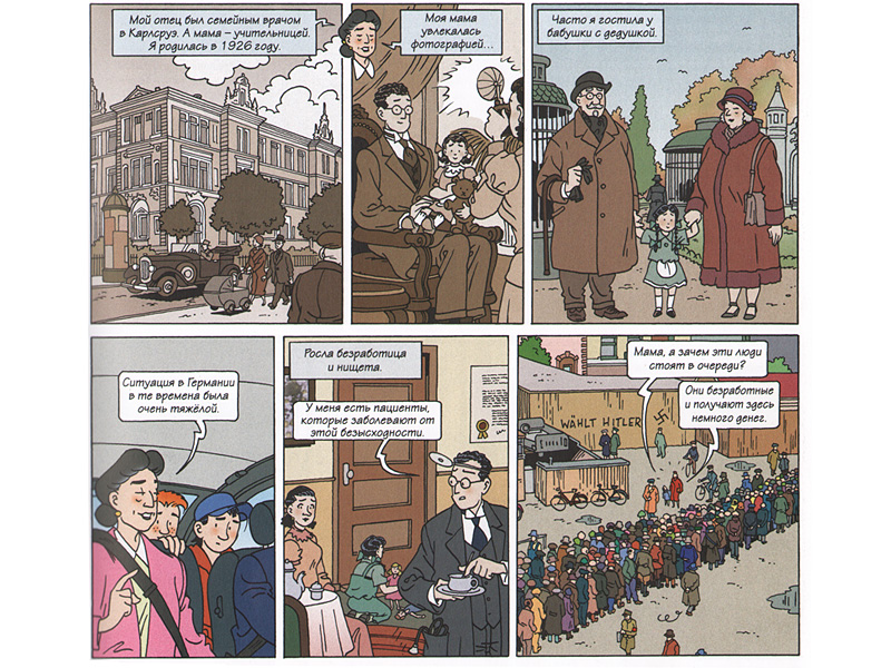 Идет 1933 год, Гитлер становится главой правительства, и врачебная практика папы Эстер несет первые потери, а в школе Эстер отсаживают подальше от других, «незапятнанных» детей. В 1935-м в Германии принимаются расовые законы, и семья Эстер решается на выезд из страны. Вспоминать это героине больно и много лет спустя: «Германия была нашей страной. Мы чувствовали себя немцами»... Уже в наши дни Эстер, давно ставшая бабушкой, с помощью своего внука пытается выяснить, как провели последние месяцы жизни ее родители в концлагере Освенцим. Шестьдесят страниц картинок с лаконичными пояснениями и диалогами, которые мои дети перечитывают снова и снова.