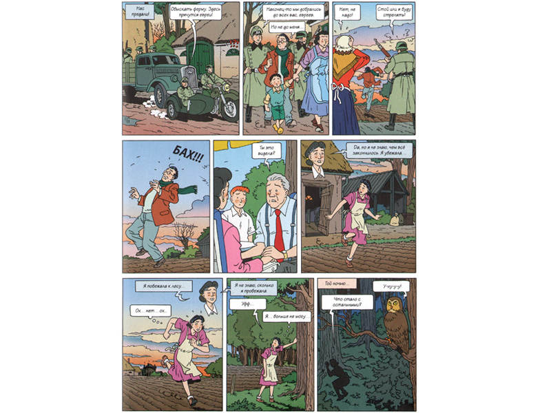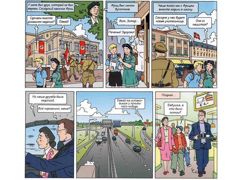 Конечно, нельзя воспринимать «Поиск» (и вообще способ графического рассказа) как единственно возможную форму разговора с младшими подростками о серьезном. Скорее, как один из доступных вариантов – эмоционально не менее сильный, чем другие. Ведь книжная жизнь, сплетенная из чувств, переживаний, событий и дат, откладывается в памяти куда лучше, чем сухие факты учебника. Кстати, над созданием этого графического романа, выпущенного в Нидерландах Домом-музеем Анны Франк в 2007 году, работали десятки голландских и международных экспертов – представителей музеев памяти Холокоста, школьных учителей и учеников. Несколько лет во многих странах Евросоюза «Поиск» используется в качестве учебного пособия, а в Германии книга официально включена в школьную программу.