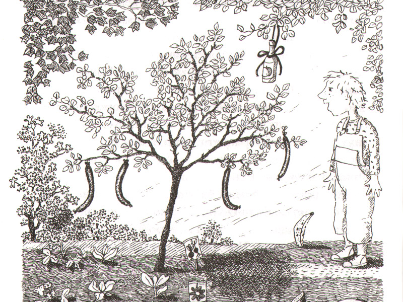 Фридер засыпает, а проснувшись, обнаруживает на кусте крыжовника сосиски. Слушатели смеются. Вокруг изумленного мальчика бананы, которые торчат прямо из земли, яблочный сок на ветках яблони и мармеладки на живой изгороди. Фридер застывает с открытым ртом, ‒ а мы с детьми пытаемся понять, что случилось в книжном саду. «Может, это фея прилетала? Может, это его слюни так проросли?» – гадают слушатели. То, что бабушка могла подыграть внуку, не приходит им в головы ‒ ведь она с самого начала так убедительно отказала ему. Похоже, детям легче поверить в волшебство, чем в то, что взрослый изменит своему слову.