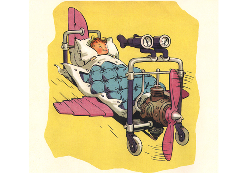 Дальше мы попадаем на настоящую выставку инженерно-технических изобретений. Сколько потрясающих воображение кроватей предстает перед нами! Тут у каждого появляется выбор. Когда мы читали эту книгу в первый раз, каждый ребенок выбрал себе ту кровать, которая ему понравилась больше всего. Например, Катя захотела оказаться в море: