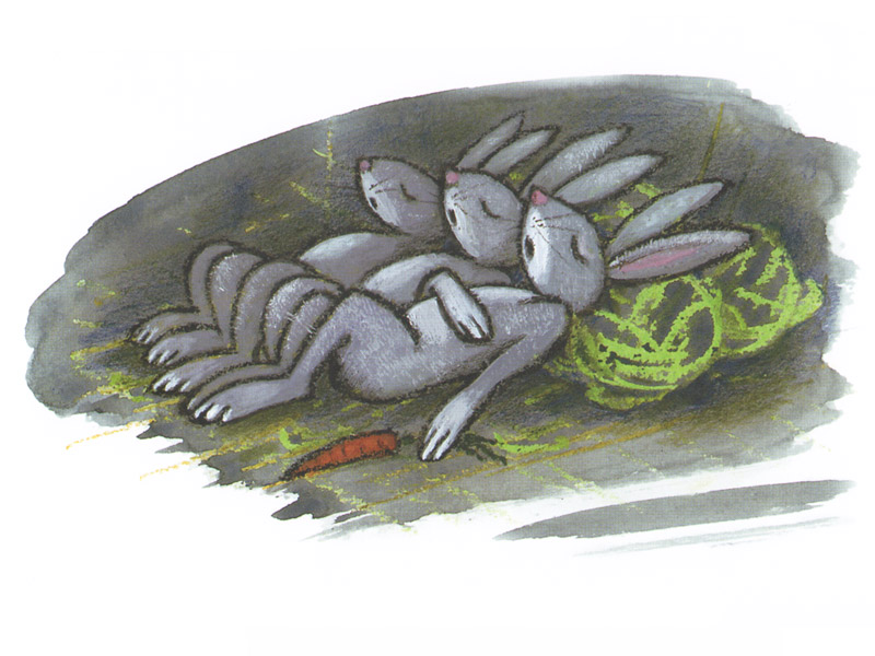 Все. Весь сюжет строится вокруг того, что медведица приходит то к одним зверям, то к другим, и видит, как спят чужие детеныши. Каждый такой «визит» – маленькое стихотворение в прозе, со словесными повторами и перекличками, с экономично сделанным, но точным и выразительным словесным портретом спящих малышей: