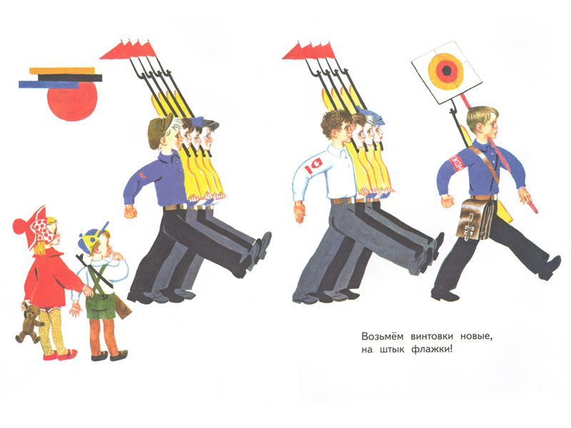 В нашей домашней библиотеке есть несколько тоненьких бумажных книжек Маяковского, изданных еще в 1980-е годы, во времена моего детства. И есть одна новая – я купила ее, когда захотела прочесть мальчикам «Что такое хорошо и что такое плохо», но не нашла этого текста в старых книгах. Я положила перед детьми и новую книжку, и старые, – с чего начнём? Дети выбрали «Возьмем винтовки»…