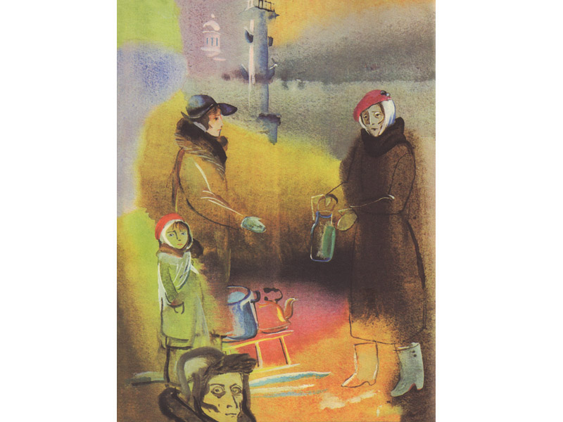 Наступила пауза, томительная и трудная, а я подумала: как хорошо, что со мной сейчас книга. Я бы не смогла рассказать это без нее, не хватило бы духу. А с книгой все проще, ведь в ней жизнь идет дальше. Мама с девочкой вернулись в Ленинград. Нам снова встретился трамвай, но не замерзший, а быстрый и звонкий. Жизнь возвращается на круги своя: мама с девочкой стали обживаться, ходить в школу и на работу.