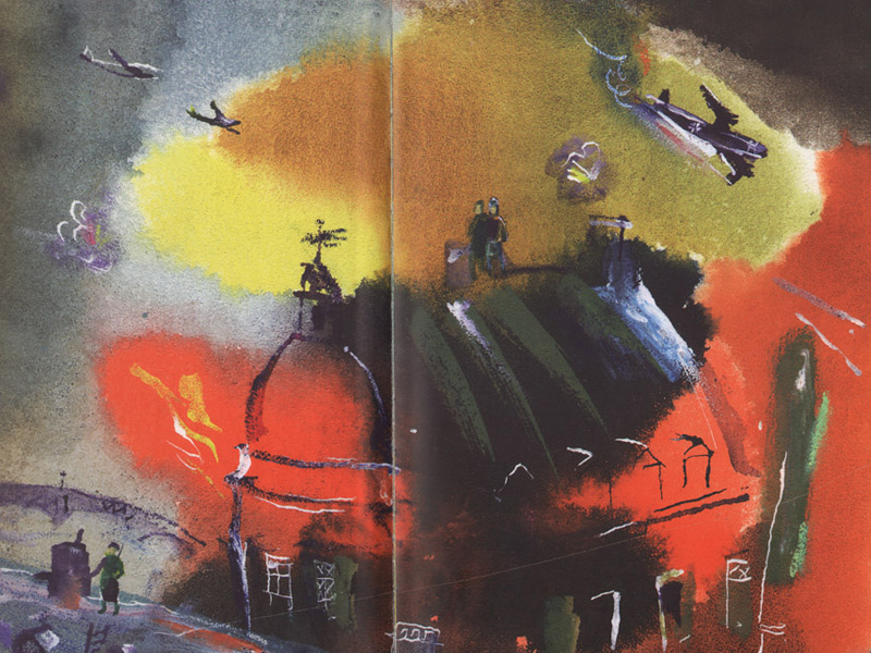 На фотографиях город нарядный, а в книге на иллюстрациях заметны разрушения. Дети увидели стул, стоящий в разрушенной квартире, потом ‒ бабушку с саночками и спросили, что она везет на них. Я решила оставить этот вопрос открытым, чтобы они смогли сами ответить на него, когда будут готовы.