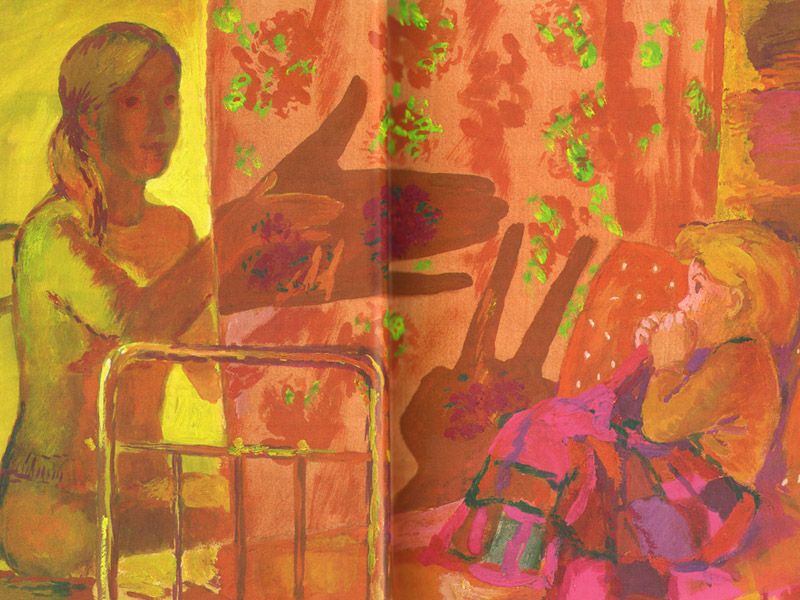 Оформлением сборника «Цветные стеклышки», в котором, кроме этой, заглавной, есть еще три прекрасные повести, занимался художник Геннадий Епишин. Его иллюстрации немного напоминают витражи. Оказывается, цвет, пронизанный светом, может стать выражением самых сокровенных человеческих чувств.