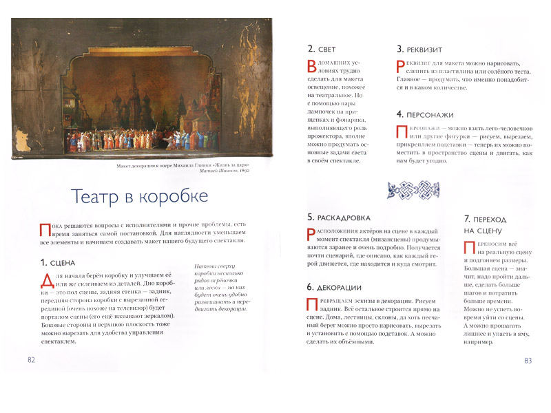 Новая информация вводится понемногу и обязательно с опорой на уже имеющийся жизненный опыт ребенка. Вот что написано, например, о глубине оркестровой ямы: «Обычно ее глубина не больше двух с половиной метров (это почти как от пола до потолка у тебя дома)». Что такое для ребенка «два с половиной метра»? Плохо представимая математическая абстракция. А при помощи простого житейского сравнения эта величина делается понятной.