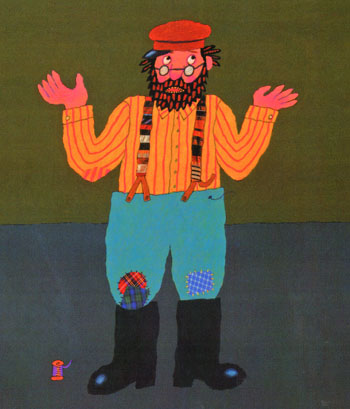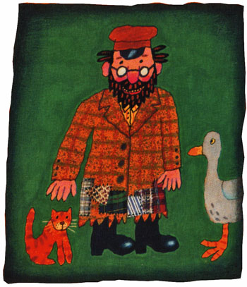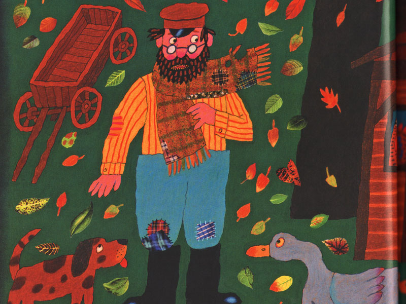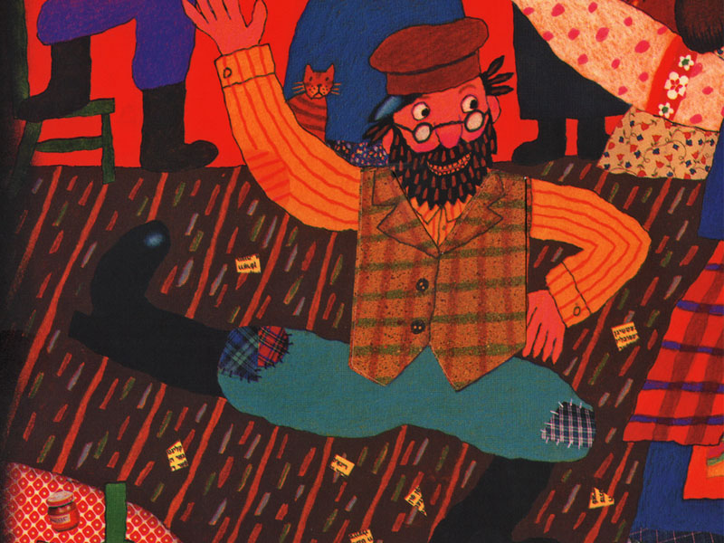 Что же такого особенного в незамысловатой, на первый взгляд, истории о забавном чудаке, который так берег свое любимое пальтишко, что не желал с ним расставаться, даже когда износил его до дыр? Вот он, Иосиф, стоит на первом развороте перед своим маленьким домиком в окружении всякой живности: кур, индюков, гусей и даже кошки с мышкой. И на нем то самое пальтишко – все в заплатах. Но смекалистый и «хозяйственный» Иосиф сделал из пальто сначала куртку, потом жилетку, потом шарф, ну и так далее... пока от пальтишка не осталась одна-единственная пуговица. Пуговицу Иосиф в конце концов потерял.
