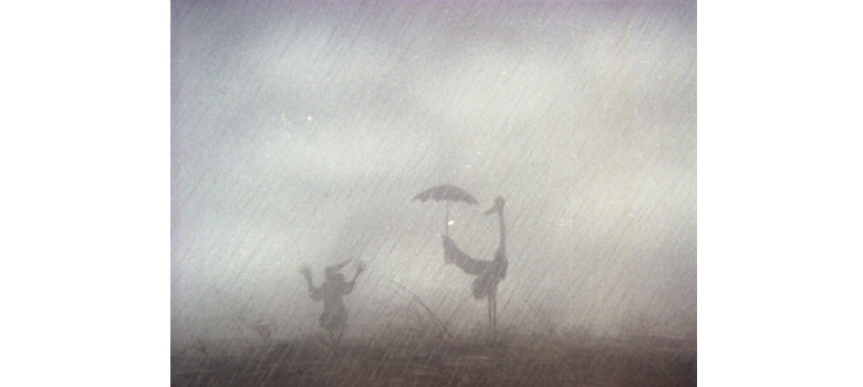 – Сергей Козлов принес мне штук сорок сказок – целую пачку. Из них я выбрал «Ежика в тумане», потому что увидел в этой сказке отголоски японской поэзии. Для себя. В Японии я тогда еще не был, но эту страну уже любил. В магазине «Дружба народов» ( напротив нынешнего книжного магазина «Москва») продавались Хокусай, Утамаро, Хирошиге. На основе сказки я сочинил сценарное решение фильма с включением большого количества новых эпизодов. Безусловно, на поэтику фильма повлиял и рассказ Тургенева «Певцы».