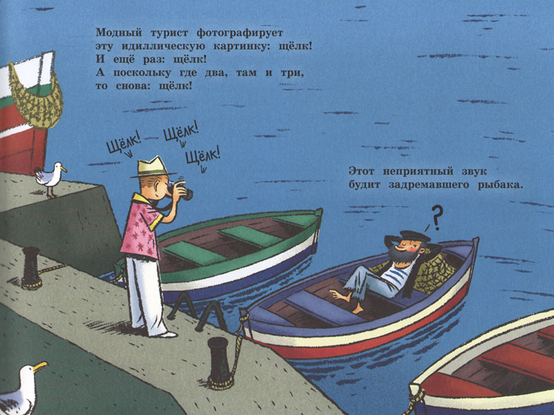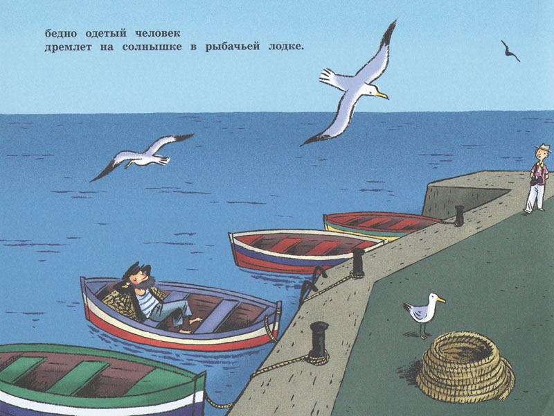О чем эта книга? Взрослым вроде бы все понятно: перед нами – вечное противостояние денег и счастья. (Стоит вспомнить, что свой анекдот Бёлль написал для первомайской программы немецкого радио.) В популярнейшей англоязычной адаптации турист предстает американцем со степенью МВА, а рыбак выглядит как мексиканец.