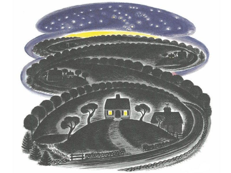 В тот вечер, когда мы собрались познакомиться с этой книгой, нам так и не удалось прочесть ни одной строчки – мы не продвинулись дальше форзаца. Все внимание Платона было сосредоточено на серии картинок, в которых последовательно представлена вся история домика. Сам домик не меняется, зато мир вокруг него претерпевает огромные перемены.