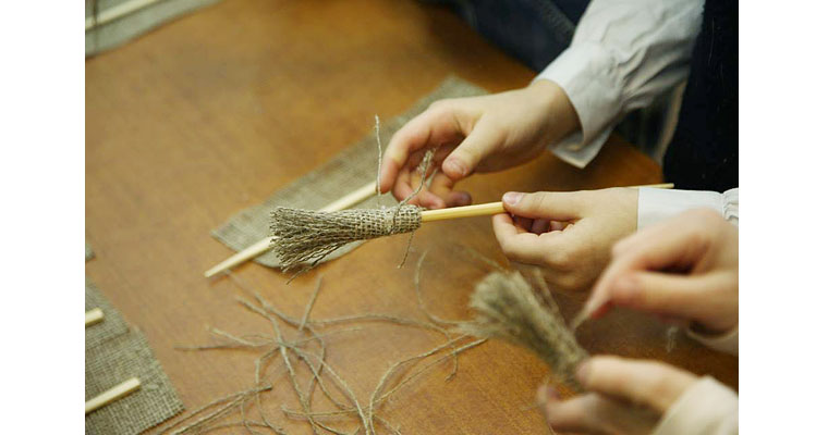 В соседнем магазине «Все для квиддича» шел мастер-класс по изготовлению метлы. Она делается довольно просто из мешковины и палочки для суши: из небольшого лоскутка вынимается большая часть поперечных нитей, оставшаяся полоска ткани наматывается на палочку, завязывается одной из нитей или ленточкой. Вуаля!