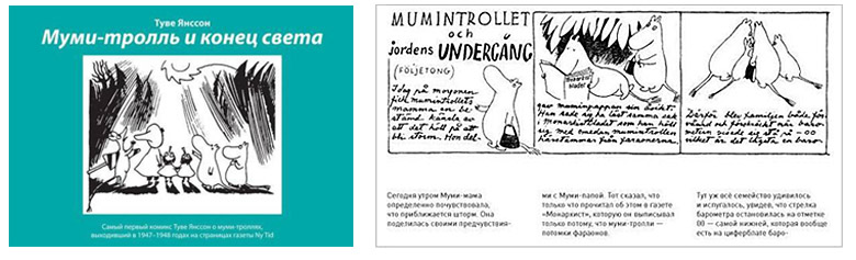 – Прежде всего, это «архивный» комикс Туве Янсон «Муми-тролль и конец света». Именно благодаря комиксам про Муми-троллей, в особенности тем, которые издают наши коллеги из издательства Zangavar, как мне кажется, наши читатели научились более лояльно относиться к комиксу. Эти книги изменили представление о комиксе и мнение о нем.