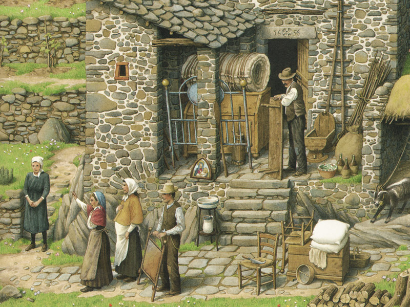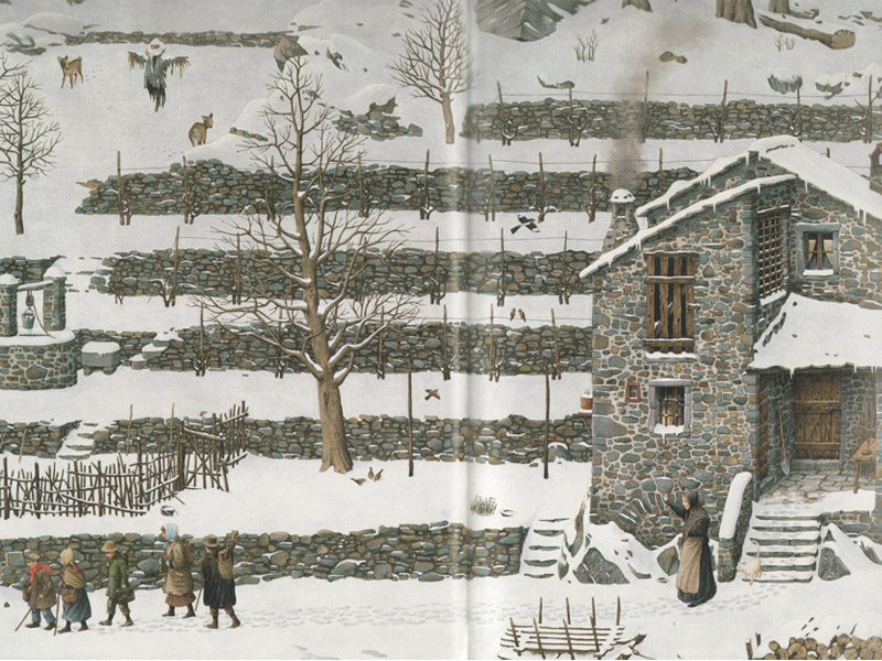 – «Я приютил несчастных бедняков, кто чудом выжил, потеряв свой кров», – я читаю детям коротенькие строфы, которые сопровождают каждую иллюстрацию. – Получается, дом во время войны действительно стал приютом. Посмотрите, сколько детей бежит к дому.