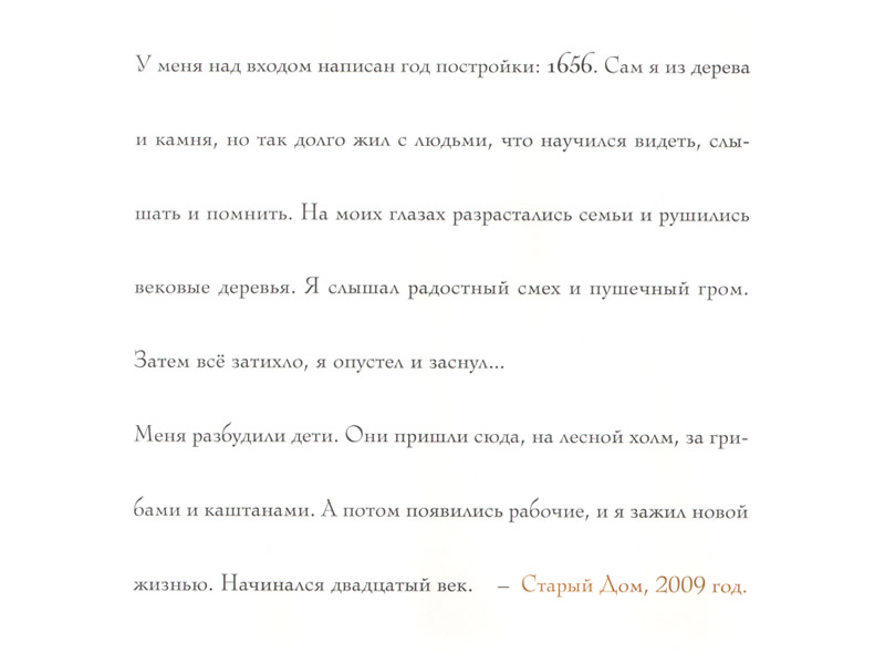Это старый дом так перестроили? Дети листают страницы – и не находят ни малейшего сходства… Может быть, его снесли, и на его месте поставили новый? «Я разрушаюсь, я живу с трудом… Когда-нибудь здесь будет новый дом…»