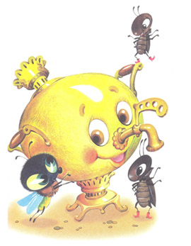 Навоевавшись с тараканищем вволю, мы смогли ввести в круг совместного чтения другое произведение, в котором царствуют насекомые – «Муха-цокотуха». На первом же развороте мы встречаем такие слова: «Приходите, тараканы, // Я вас чаем угощу!». Я прошу детей показать тараканов, но они их не находят. Да и как узнать в этих милых букашечках сородичей нашего страшилища?