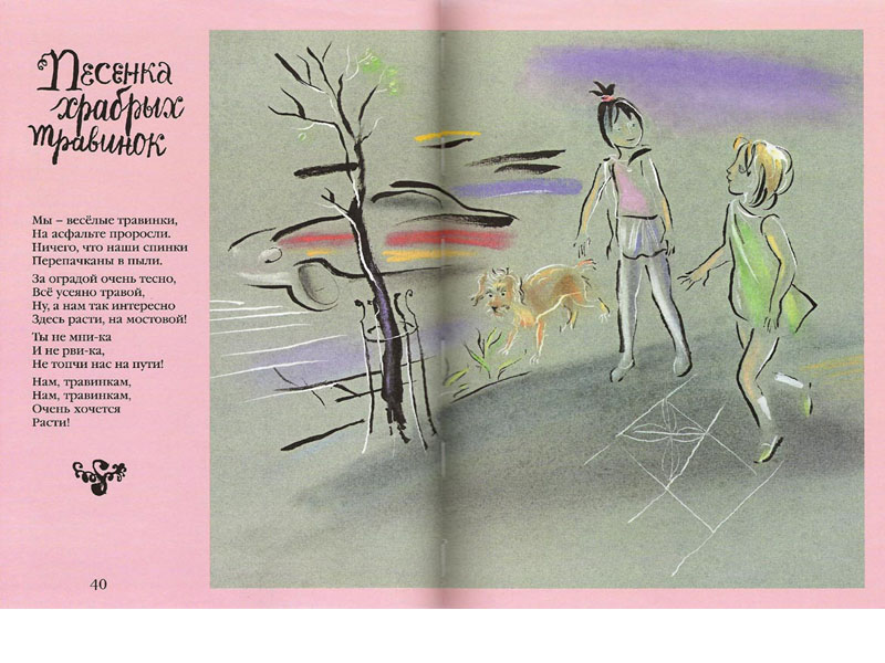 Иногда наши с Федором собственные наблюдения накладывались на тексты без явных топографических примет. Например, когда мы прочитали «Песенку храбрых травинок», пробившихся сквозь асфальт, то вспомнили, что на крыше Конюшенной церкви, где отпевали Пушкина, выросло маленькое щуплое деревце. А на Стрелке Васильевского острова, у самого спуска к Неве, между булыжниками растет настоящий мох. И еще нынешней неожиданно теплой зимой набухли почки у вербы во дворе.