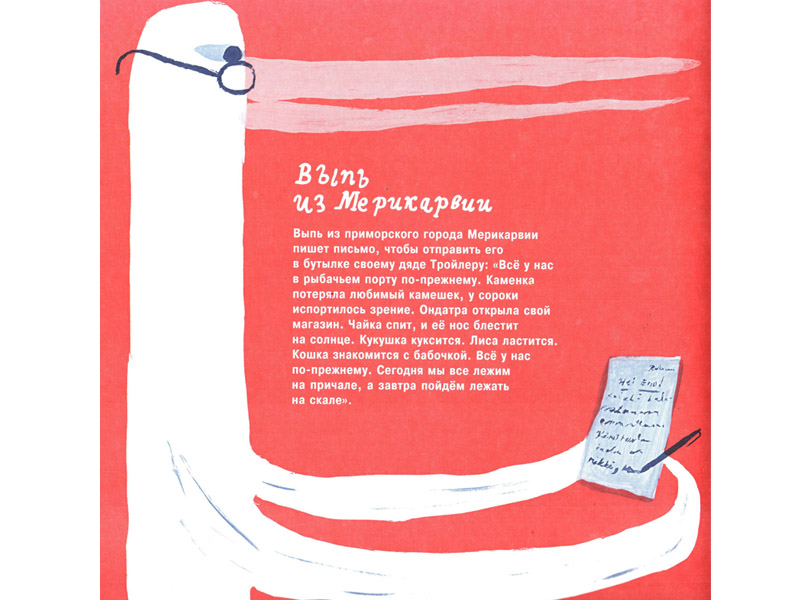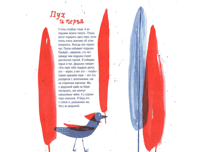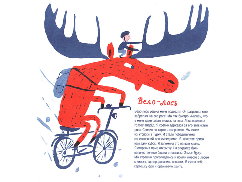 По большому счету нам с Федором не было никакого дела до правдоподобия. Мы прочитали, как ласточка перезимовала на дне озера Ламбушка, среди лягушек и карасей (там «она вела дневник и принимала грязевые ванны», пока ей это не наскучило). Как морж подружился с деревянной лошадкой со сломанной карусели и учил ее нырять. Как «бабушки-бруснички» катали в коляске «грудничка-боровичка».