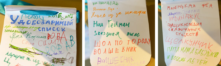 – Да, конечно. Так что это дети должны узнать. А потом мы предлагаем им назвать книги, которые можно было бы читать Винни-Пуху в «безвыходном положении». Что бы они сами стали ему читать? И дети записывают в специальный блокнотик названия книг. Даже самые маленькие, которые умеют писать только печатными буквами.