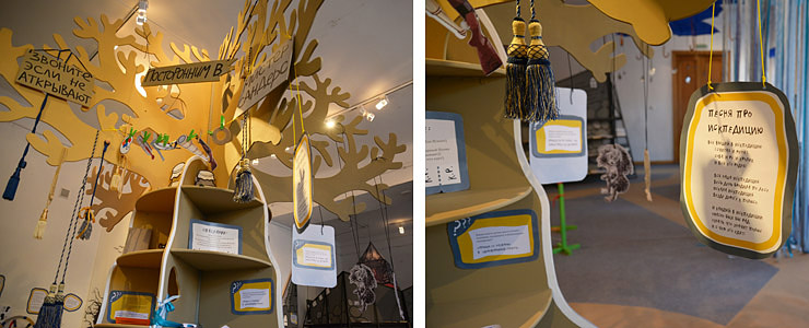 Дважды в год, в период осенних и новогодних каникул, петербургский музей Анны Ахматовой в Фонтанном доме дарит детям выставку-праздник, которая посвящена классическим детским книгам. Это не книжная выставка в привычном смысле слова. Это сказочная страна, в которую попадают дети, захватывающая игра с приключениями. Каждый раз ее придумывают заново. А после того, как выставка заканчивает свою работу в музее, она переезжает в какую-нибудь питерскую библиотеку. Конечно, в условиях библиотеки сложный сценарий выставочной игры невозможно воплотить полностью. Но отдельные идеи, безусловно, можно взять на вооружение, даже если вы никогда не видели ни одной выставки Ахматовского дома. Об этом «Папмамбук» беседует с сотрудницей музея Еленой Джумук.