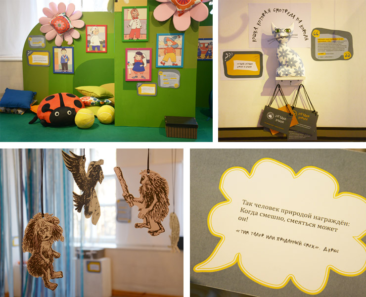 – Обычно – да. Причину грусти, печали объяснить легче. Потом мы вместе приходим к выводу, что жить без радости очень трудно. А когда нам хорошо, радостно, мы смеемся. И дальше мы им рассказываем про Тима Талера, о том, что он продал свой смех. И опять предлагаем детям подумать: в каких обстоятельствах можно на это решиться? И за что, за какую цену можно продать свой смех? И кто был тот загадочный человек, который купил у Тима Талера смех? Дети высказывают свои догадки, но мы не даем ответа на вопрос. Они так и уходят озадаченные. Конечно, дети могли бы найти ответ на нашей выставке: у нас в экспозиции обязательно представлены текстовые отрывки. Но для этого нужно очень сильно сконцентрироваться и внимательно читать. А дети на выставке читать все-таки не склонны. Им хочется общаться и играть с нами. Конечно, это особенная игра. У нее есть определенные правила. Эти правила дети обычно сразу принимают. И недосказанность как бы является одним из таких правил.