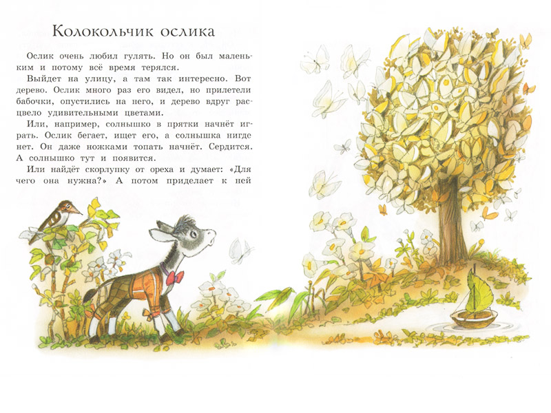 Я с удивлением обнаружила, что на прогулке, особенно в небольших группах, читается много. На коврике выделено специальное место, где лежат книги, и дети регулярно присаживаются туда отдохнуть от беготни. Чаще всего мы с ними читали «Пряничный город» Геннадия Цыферова с иллюстрациями Бориса Тржемецкого. Эти маленькие сказки, такие тонкие, нежные, солнечные, словно написаны теплым летним утром и как нельзя лучше подходят для краткой переменки между шумными играми на прогулке.K.