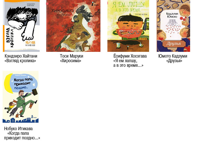 Еще о детских японских книгах можно прочитать в статьях: «Дети и книги в японской культуре» и «Всегда крутись туда же, куда крутится крокодил, или Из уроков Хироси Абэ»