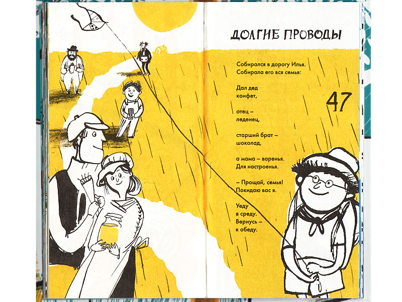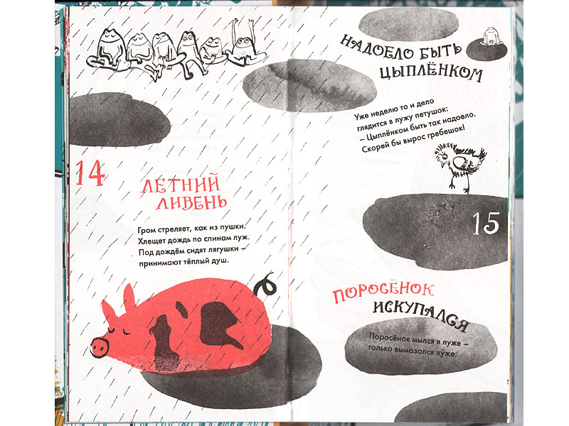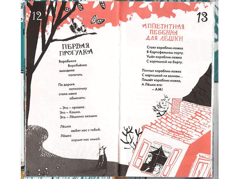 Для ребенка любая история всегда начинается именно с картинок. «Рисовать» стихи, порхать в воздушных потоках рифм и образов, наверное, очень интересно и радостно. «Стихи с горчицей», проиллюстрированные Анной Романовой, похожи на школьную тетрадку, в которой мечтательный школяр зафиксировал полеты своей фантазии. Романтичные коровы и разномастные кошки, маленький скрипач и лошадь в грушах не дополняют текст, а полноправно рассказывают уже свою собственную историю. Эти рисунки, выполненные с чудаковатой детской небрежностью, на грани незавершенности, делают стихи Вадима Левина еще более волшебными.
