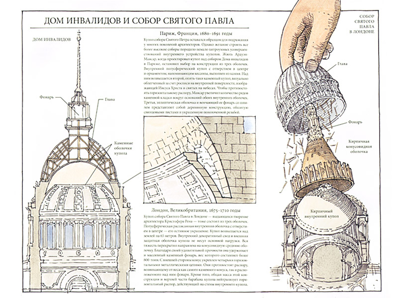Ну и еще, конечно, почему стоит подержать эту книгу в руках даже младшим школьникам, не знакомым ни с черчением, ни с физикой, ‒ благодаря прекрасным иллюстрациям они совершают увлекательнейшее путешествие во времени и пространстве, существенно расширяя свой кругозор. Теперь они будут точно, на уровне ясно представимых образов, знать, что такое Эмпайр-стейт-билдинг, собор Святой Софии, собор Святого Петра, Капитолий, Евротуннель, Ассуанская плотина. А более детальное погружение в устройство этих гигантов можно отложить на несколько лет, снова вернувшись к энциклопедии Дэвида Маколи лет в двенадцать.