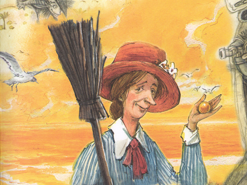 В историях Мэри Нортон это мисс Прайс. Мисс Прайс становится для детей тем самым необходимым взрослым, без которого в принципе невозможно нормальное взросление. То, что она колдунья, скрыто от глаз взрослых и мало влияет на ее отношения с ними (в отличие от колдунов Средневековья). Правда, мисс Прайс в силу разных особенностей характера и своего образа жизни – абсолютный маргинал в мире взрослых. Если сказать легче, такой странный человек. Она живет неподалеку от дома, где гостят дети, разъезжает всюду на велосипеде, навещает больных и дает уроки музыки. А еще мисс Прайс потихоньку от всех осваивает «верховую езду» на метле. То есть колдовское искусство. Мисс Прайс – колдунья.