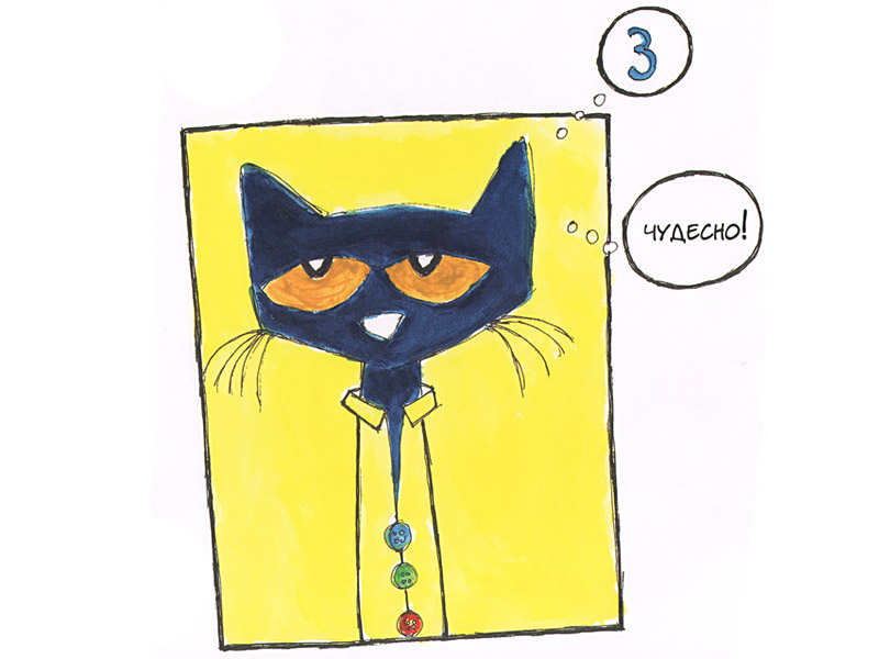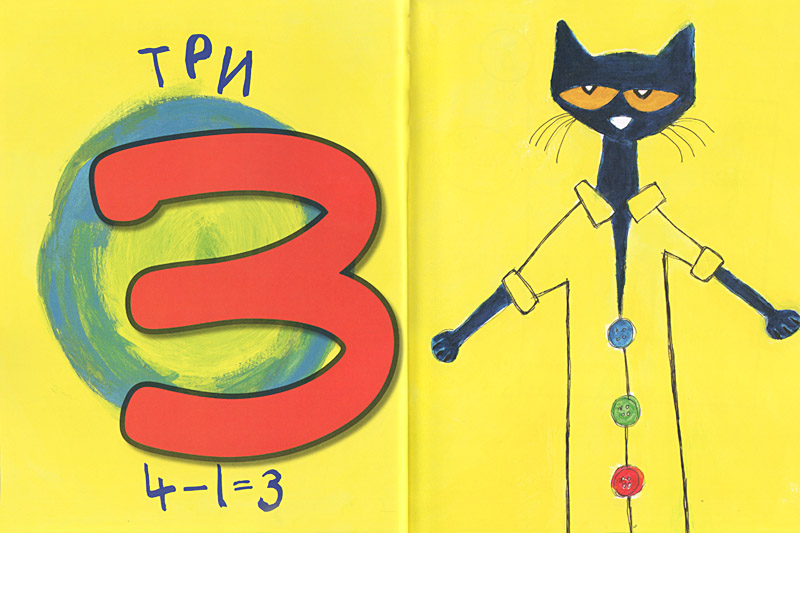 В книгах для детей двух-четырех лет юмор – нечастый и потому очень ценный гость. Чувство юмора формируется у детей долго и у всех в разное время. Оно предполагает способность отстраниться от описанной в книге ситуации, увидеть ее со стороны, а значит, и способность перенести эту ситуацию в другой контекст, посмеяться не только над другими, но и над собой. Тем замечательней прием, найденный художником Джеймсом Дином: он так органично вплетает юмор в сказку о коте Петеньке, что даже самый маленький читатель поймет, над чем и почему тут стоит смеяться. Более того, Джеймс Дин и Эрик Литвин умудрились создать книгу, которая сочетает и историю-сказку, и математический тренажер, закрепляющий навыки счета от одного до пяти.