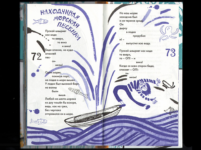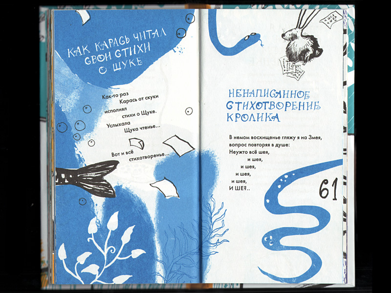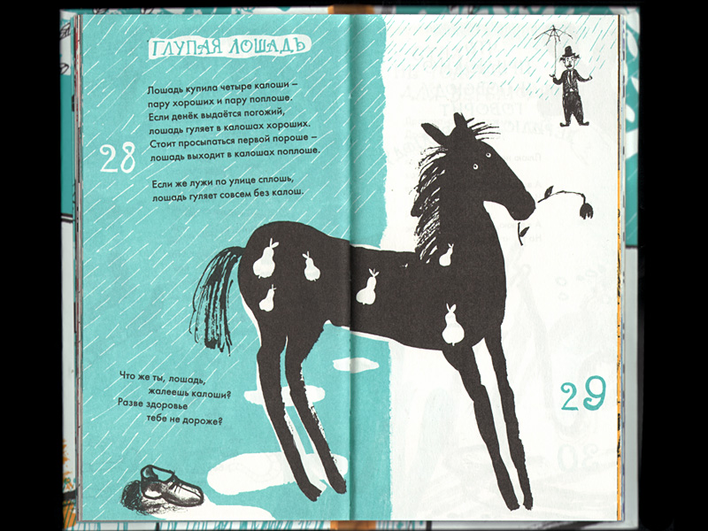 – Сборник состоит из пяти тетрадей. От тетради к тетради стихи «взрослеют». Насколько я знаю, это концепция всей серии. И ее придумали директор издательства Ирина Балахонова и художник Татьяна Кормер, которая тогда работала арт-директором. Вадим Александрович эту идею «взросления» поддержал и составил новый сборник с «говорящим» названием. Стихи в книге часто дерзкие, язвительные, часто грустные, лиричные, и почти все при этом очень смешные. Я решила это «взросление» передать цветом: самые детские, «стихи-игрушки» – в красной тетради. И отчасти – в бирюзовой. Желтая – это уже стихи «с горчицей». Там много задиристых стихов, с элементами сарказма. Но очень нежного сарказма. Хотя детям этот сарказм не особо заметен. Это для взрослых, они увидят. Самые грустные, взрослые стихи – в синей и фиолетовой тетрадях. Баллады, песни, часто об одиночестве. Очень многие уже успели обратить внимание на стихотворение «Калоша», его постоянно цитируют в рецензиях на книгу. А вот детям может быть совсем и не грустно читать эти «синие» стихи, а скорее смешно. В этих стихах есть сюжеты, истории, в них столько звуков, приятных языку. Грустное там найдет только тот, кто сам испытывал это чувство. Мне так кажется. Эти стихи – ироничные, порой и полные черного юмора – мне особенно нравятся. И эти стихи не издавались в детских сборниках «Глупая лошадь», они есть только в «Стихах с горчицей» или редко попадаются в других сборниках. Большую часть этих стихов я знаю давно, и я не раз к ним в жизни мысленно обращалась. Ко всем левинским Лошадям, Совам, Верблюдам и Слонам. Для меня это что-то заменяющее притчи, которые я сама не могу рассказать другому, потому что не умею хорошо рассказывать. А короткое левинское стихотворение – как раз такая история. И запомнить легко.