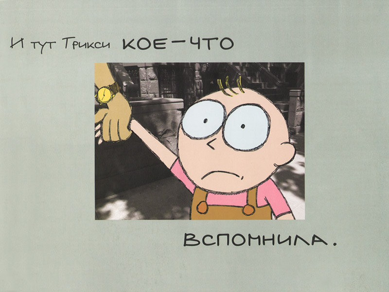 Я дала Платону эту книгу с некоторым педагогическим прицелом: у него проблемы с логопедией – он умеет правильно произносить все звуки, но часто в потоке речи забывает об этом, и разобрать, что он говорит, становится невозможно. И когда Платон добрался до конца истории, я вскользь заметила, что Трикси мне кого-то напоминает. Платон жутко разозлился и несколько раз четко и красиво сказал «заинька», чтобы продемонстрировать мне, что он говорит гораздо лучше Трикси и никогда не скажет никаких «тадиняп». Теперь, когда он начинает картавить и забывать звуки, я ему напоминаю о Трикси – и он тут же исправляется.