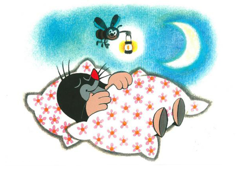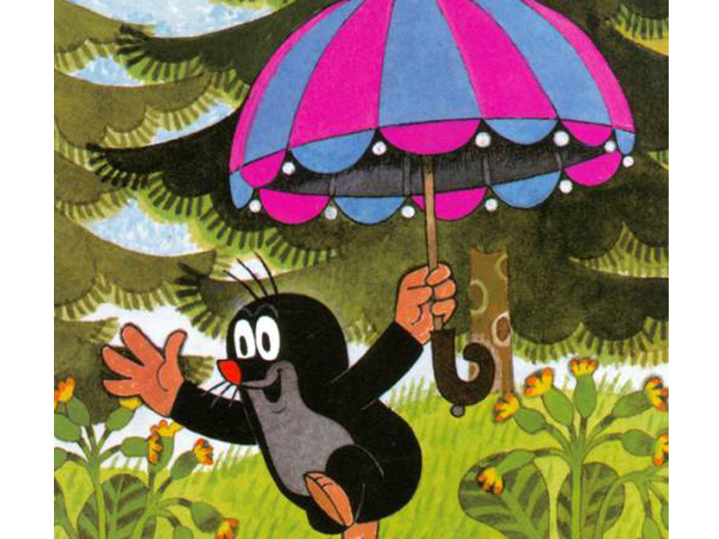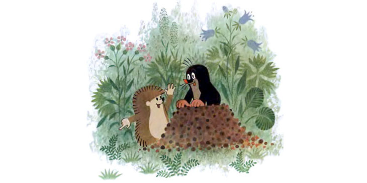 Мой пятилетний сын обожает книги про кротика, сделанные по мотивам чешского мультфильма. Так там кротик много времени проводит на поверхности. И маленький крот, нарисованный Эрлбрухом, в поисках обидчика выбирается из-под земли и бодро ходит от одного животного к другому.