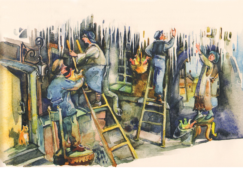 После чтения этой книги так хорошо рассматривать на форзаце сумеречный город с островерхими крышами, печными трубами и флюгерами на башнях. А потом слушать немного грустную «Песню фонарщиков» (слова Булата Окуджавы, музыка Алексея Рыбникова).
