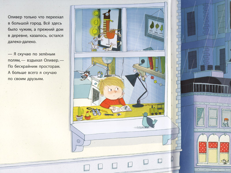 «Оливер и Пэтч» Клэр Фридман – книжка-картинка про поиск друга. Еще не раскрыв ее, я спрашиваю своих слушателей, где можно искать друга. Сначала вопрос ставит их в тупик: «Везде!» Уточняю: на улице можно? «Да!» А где еще? «В садике! В школе! На площадке! В магазине!..» – тут дети хмурятся, пытаясь себе представить, как можно в магазине с кем-то подружиться. Предлагаю вариант: может, в очереди? Если мамы с детьми стоят друг за дружкой в кассу, там-то и можно познакомиться и подружиться. Дети кивают: да-да, если так, то и в магазине точно можно. Пауза. Вдруг одна девочка делится озарением: «В библиотеке!» Но всегда ли друзья – люди? Слушатели в один голос возражают: «Нет! Могут быть еще собаки, кошки, хомяки!» Раскрываем книгу.
