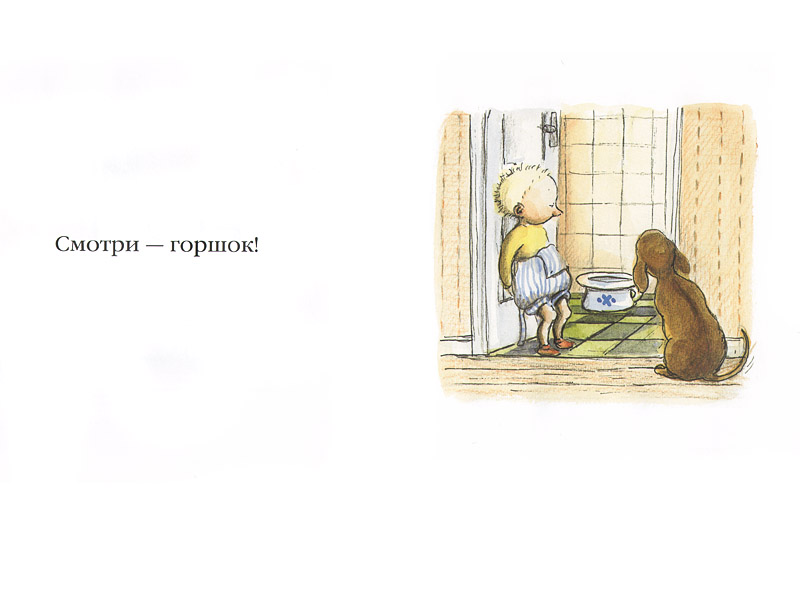 Двух-трехлетнему читателю долго сидеть и слушать не очень-то интересно, а вот рассматривать картинки ему наверняка нравится, особенно если это простые и понятные образы. В таком возрасте активно формируется собственная речь. Ребенок понимает больше, чем может сказать: первые слова уже освоены, а первые предложения еще только складываются. Что происходит в жизни этого человека? Он учится играть: сам и со сверстниками; осваивает пространство, но неподалеку от взрослых; уже знаком с горшком, хотя еще случаются проколы.