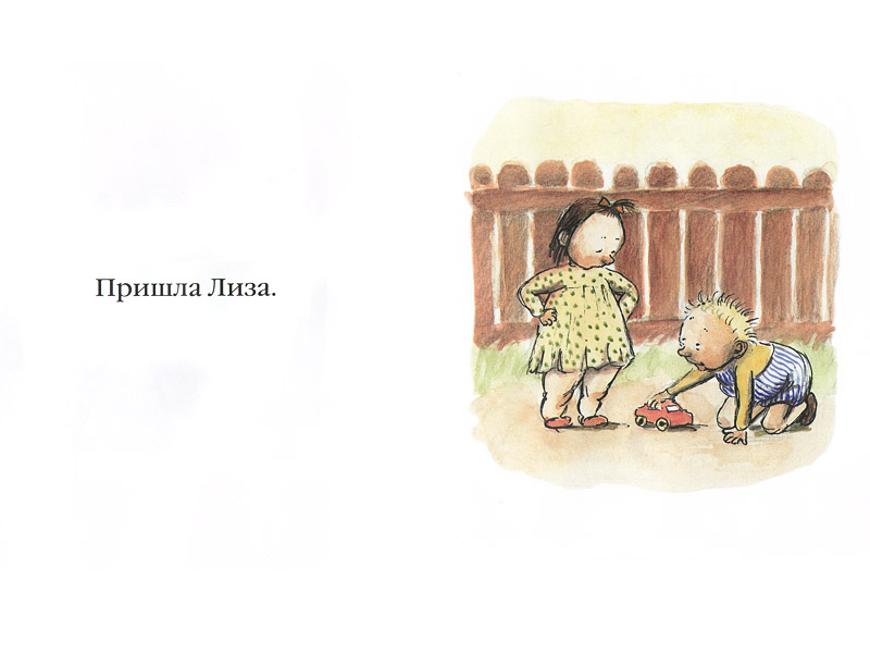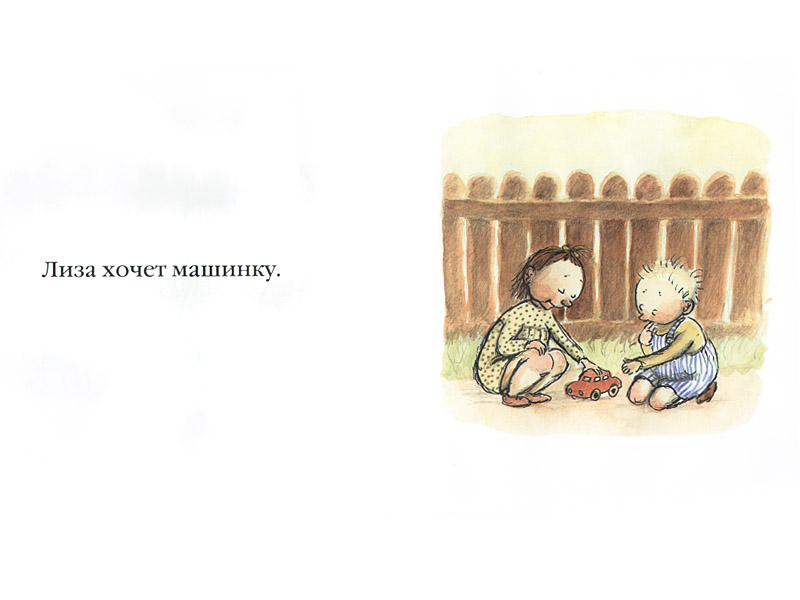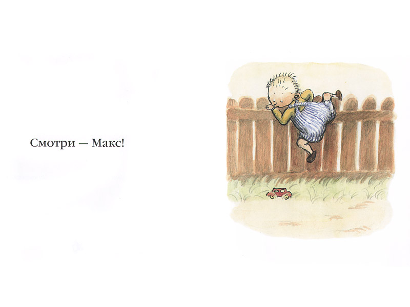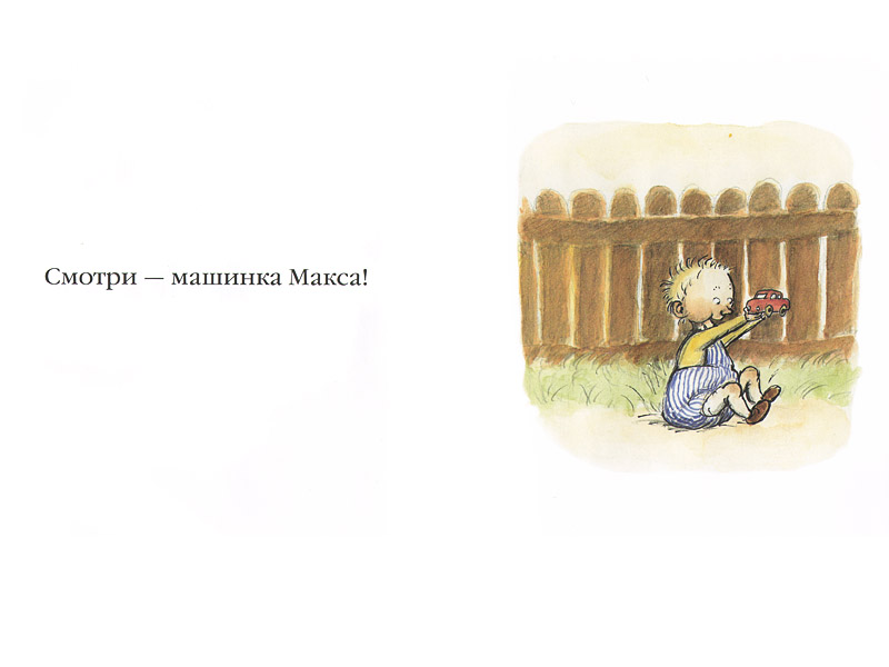 Опытные взрослые чтецы хорошо знают, что когда читаешь малышу, авторский текст ‒ лишь отправная точка для устного родительского творчества: «Смотри, вот у Макса машинка! Красная машинка! Ему нравится машинка! Он радуется! Макс играет машинкой… А вот пришла девочка. Девочка Лиза. Ей нравится машинка? Давай читать дальше!» ‒ в общем, «что вижу, о том и пою». И здесь особенно важна точная работа художника.