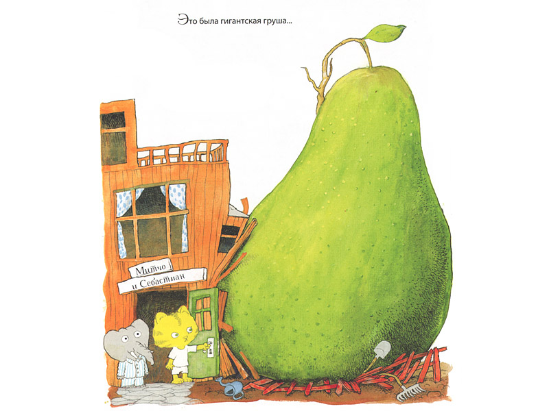 Многие дети 6-10 лет любят придумывать разные невероятные истории. Эти словесные фантазии уже не сопровождаются действиями с предметами, но выполняют те же функции, что и первые детские игры, – закрепить «правильные» представления об устройстве мира, посмеяться над любыми отклонениями от «нормы», наполниться оптимизмом и уверенностью в себе. «Невероятная история о гигантской груше» известного датского художника и писателя Якоба Мартина Стрида во многом напоминает такие рассказы, сочиненные детьми.