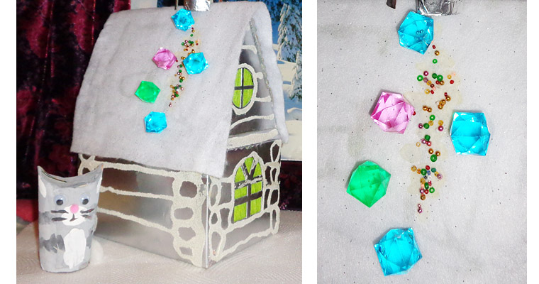 На один из скатов крыши наклеили множество декоративных кристаллов и бисера.